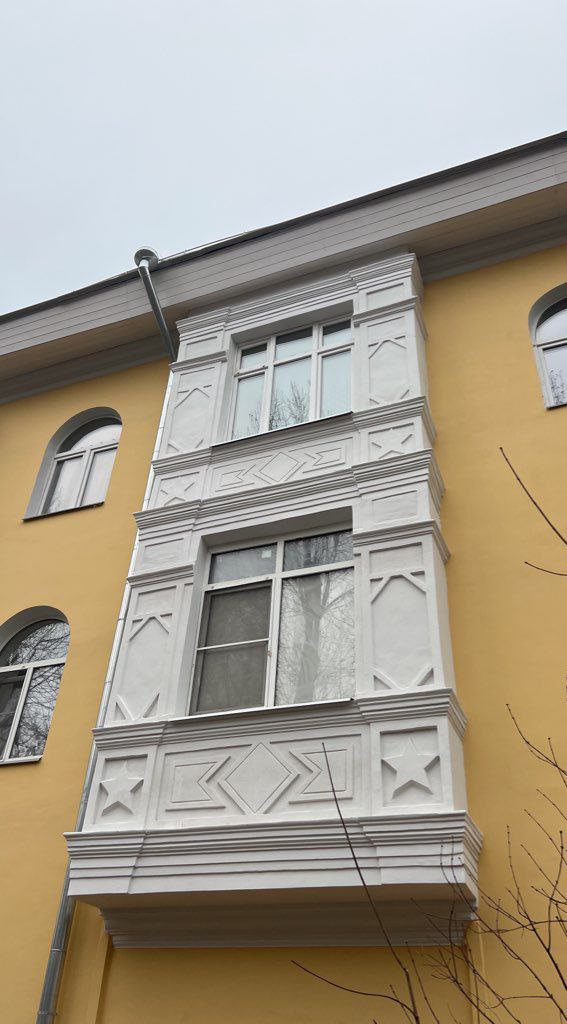 - Ремонт фасада — восстановление штукатурного слоя и архитектурных элементов